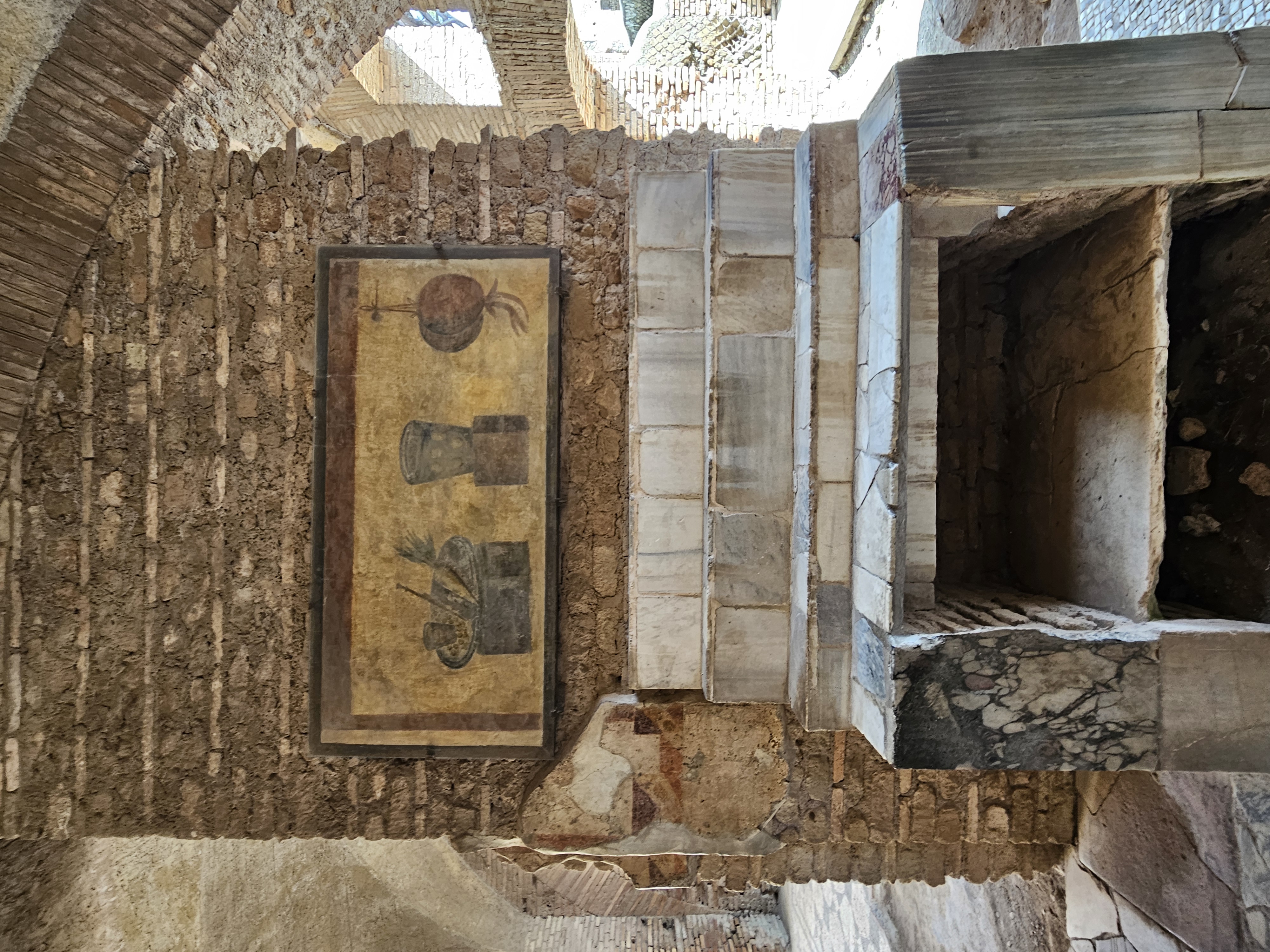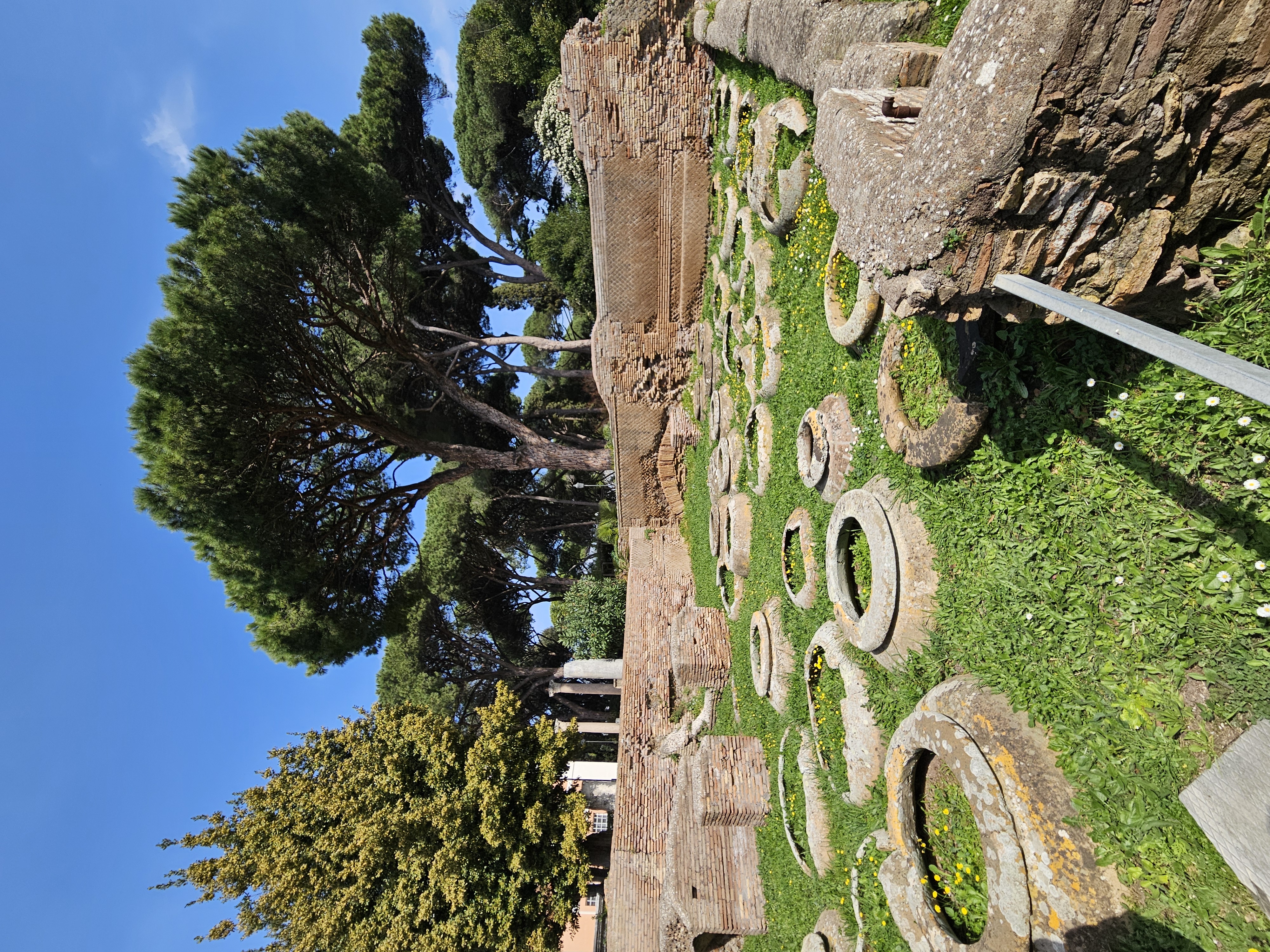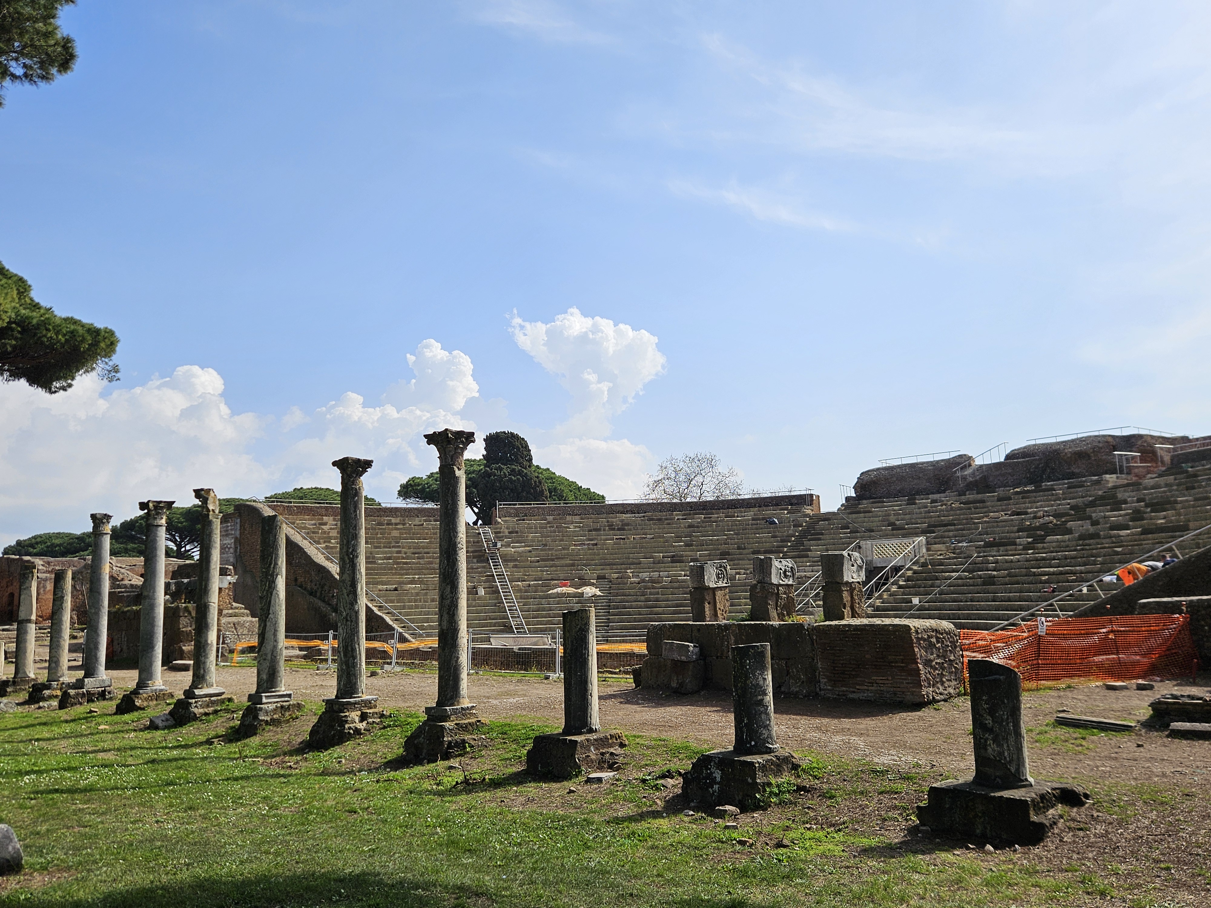 Après une vraie nuit dans un lit et un bon petit déjeuner, nous avons pris la direction d'Ostie dont les vestiges nous ont fait découvrir les activités de ce port très important pour la ville de Rome antique : entrepôts, boutiques, mais aussi temples, théâtre...