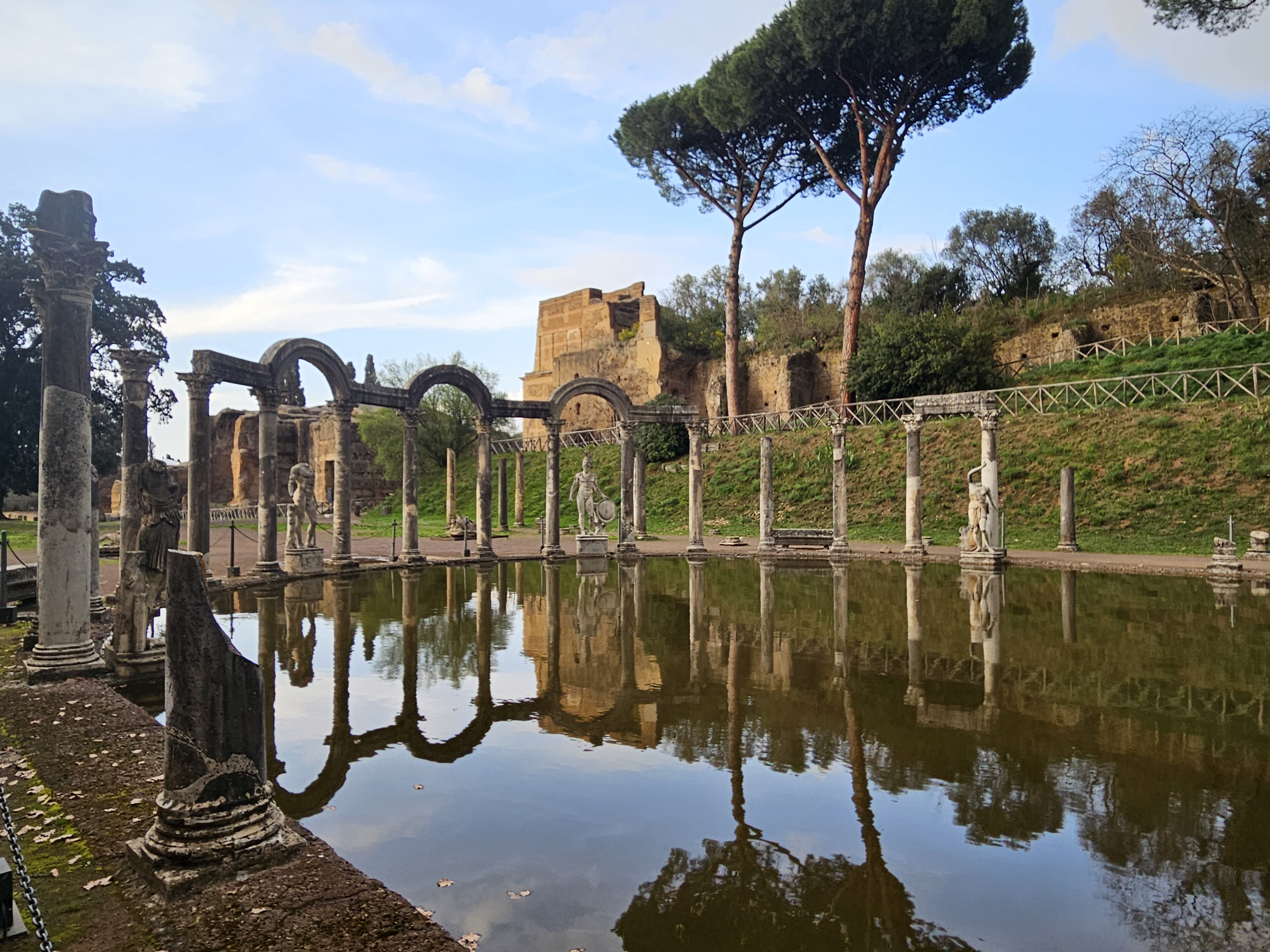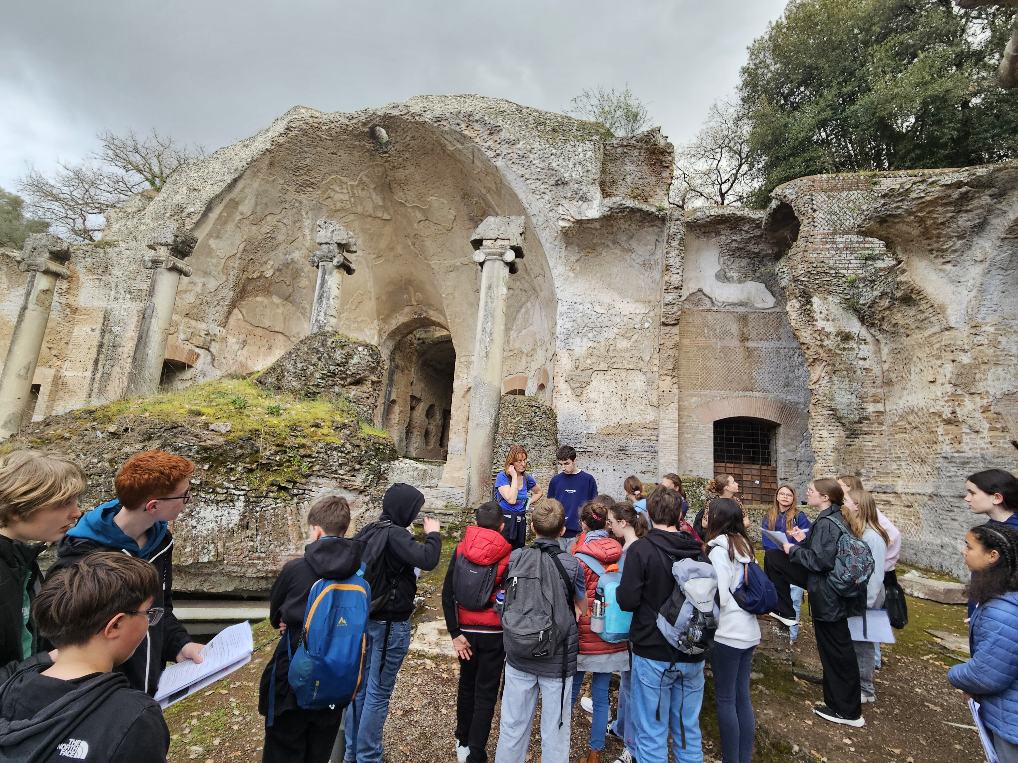 Après un déjeuner sur l'herbe, nous sommes allés à la Villa Adriana. C'était la demeure de l'empereur Hadrien dans la ville de Tivoli. Il célèbre les civilisations qu'il a explorées lors de ses voyages (Grèce, Égypte).